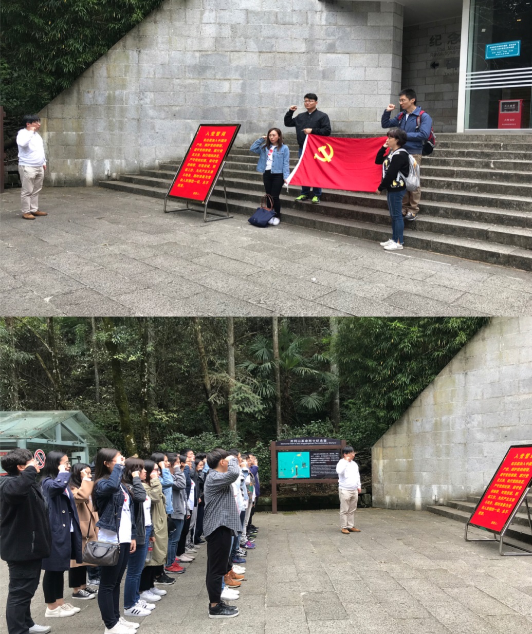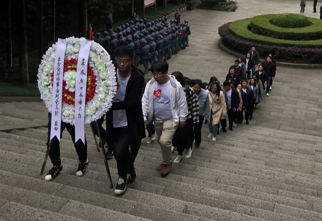 第一站,我们怀着无比崇敬的心情来到了井冈山烈士陵园。革命烈士纪念堂的碑文密密麻麻的记载着无数个先烈们的光辉业绩,让人深受教育。我们在纪念堂前对革命烈士三鞠躬,并以事务所党支部的名义敬献了花圈。脚踏着革命先烈们曾经战斗过的这片红土地,耳边似乎还能回响起隆隆的战鼓、嘹亮的号角和喊杀声,一个个年轻的生命在这场战争中逝去,在历史的长河中他们中许多人可能未曾留下任何痕迹,我们带着悲痛的心情为这些革命英雄默哀和悼念并在纪念堂前对革命烈士三鞠躬。最后我们重温入党誓词,十二句话,字字千钧,句句铿锵,牢记对党的承诺,不忘初心,砥砺前行。