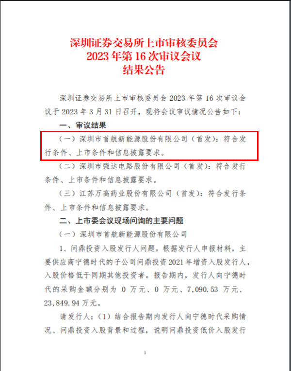 本所服务的客户 深圳市首航新能源股份有限公司,在2023年3月31日通过深圳证券交易所上市审核委员会2023 年第16次审议会议顺利过会!