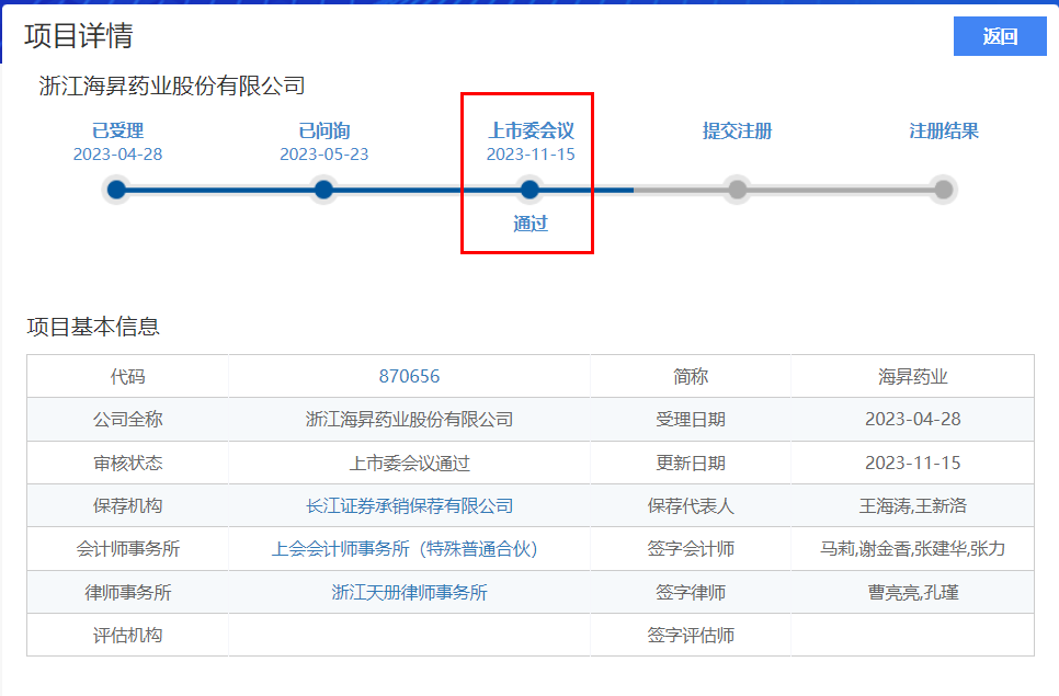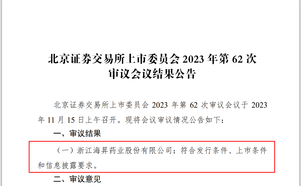 本所服务的客户浙江海昇药业股份有限公司,在2023年11月15日通过北京证券交易所上市委员会2023 年第62次审议会议顺利过会!