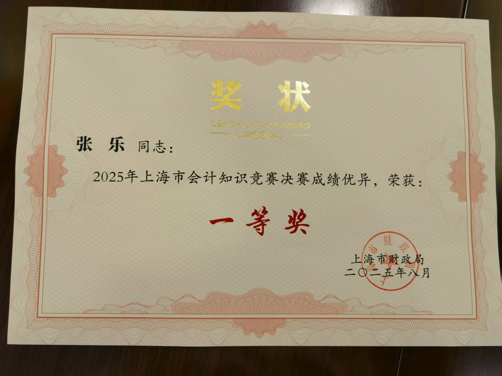 张乐代表新葡京官网参与比赛,在上海市会计知识竞赛决赛环节表现稳健,最终荣膺个人一等奖殊荣,并纳入本市财会服务人才体系。在此致以热烈祝贺,共襄荣耀!